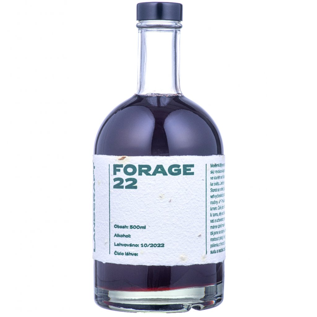 My máme úplně malinkej kmen, jen pár párů rukou. Ale pustili jsme se stejnou cestou. Celý jaro a léto jsme sbírali volně rostoucí plody, květy, kůry a kořeny. Je to vlastně rok 2022 v kostce. Totiž v láhvi. Byl to fajn rok, ne? Dal hojnost ovoce, medu, bylin i ořechů. Vydestilovali jsme pálenku z hroznů, všechno to do ní naložili, zavřeli do sudu a nechali zrát. Tohle je výsledek.