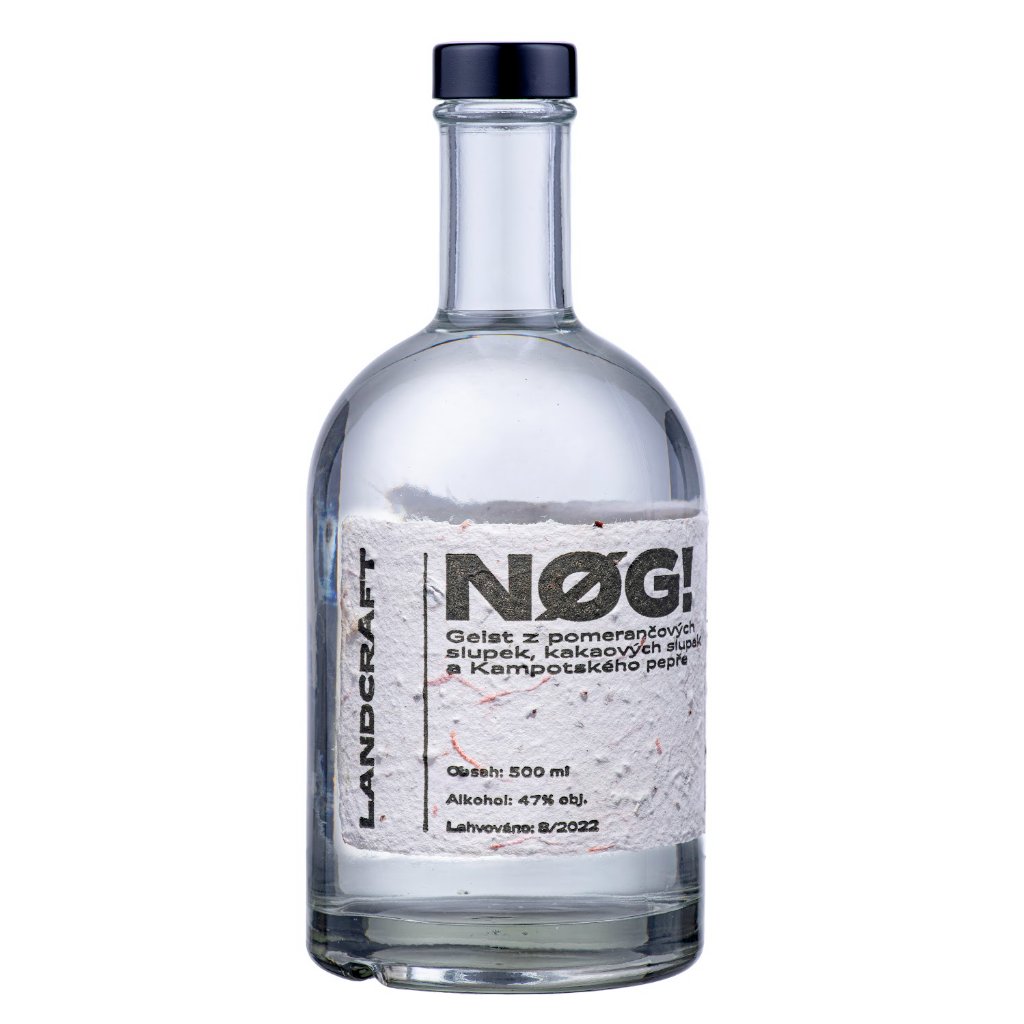 Pomeranče, pepř a čokoláda. To je NØG! Co je to NØG? Technicky jde o takzvaný geist, tedy průtahový destilát, ve kterém se pomocí velejemného lihu extrahují a následně destilují tři přírodní složky. Jeho základem jsou pomerančové slupky v biokvalitě, které jsou vlastně odpadem po výrobě freshů. K nim přidáváme slupky kakaových bobů, které se odlupují během jejich pražení. Poslední složkou je pak luxusní Kampotský pepř od kamarádů z .pepper..field. Každou ingredienci zvlášť pečlivě vyextrahujeme a následně vydestilujeme ve velejemném lihu. NØG! je cirkulární, protože je z velké části vyroben z odpadu. Je to udržitelný drink.