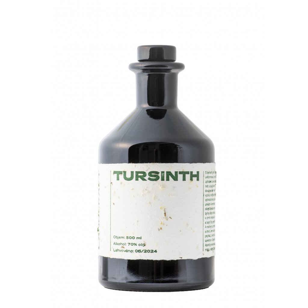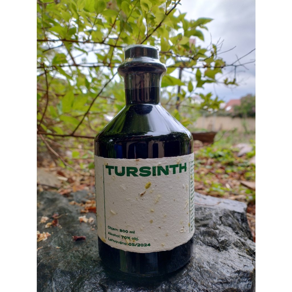 S bylinami jsme žili dávno před tím, než jsme si vůbec začali uvědomovat, že jsme lidmi. Evoluce si nás vypiplala v kolébce upředené ze světa rostlin a pomalu nás učila tomu světu rozumět a používat ho. Každá tlupa, každý kmen si to vědění budoval ve svém lokálním kontextu. / Hory byly vždycky drsnější výzvou než pobřeží nebo nížiny kolem řek. Snad i proto se ve východofrancouzské Juře, v okolí Pontarlier, zrodil absinth, unikátní kombinace hořkých a aromatických bylin, které provázejí člověka horami od věků. Pelyňky, fenykl, anýz, yzop a další byliny daly vzniknout receptuře, která v létě pozvedala mysl, v zimě vracela do života. / My ale nežijeme pod Alpami a bájný Erz, nejvyšší vrch v okolí, se tyčí jen do výše 345 metrů. A rostliny tu promlouvají svým vlastním jazykem jemných vůní a chutí. Jen na zahradě a v okolí Turska napočítáme devět druhů pelyňků, z nichž každý dá při destilaci své vlastní aromatické spektrum. Stejně tak i meduňka, popenec a další rostliny. / Absinth je královská disciplína, ale Tursinth bude vždycky otiskem místa, v němž žijeme.